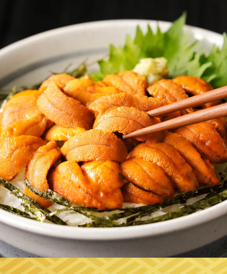 炊きたての白いご飯に、濃厚な雲丹をたっぷりと。 そこに弾ける食感の「いくら醤油漬け」を合わせれば、とろける甘みと塩気が絶妙に溶け合う、贅沢なうにいくら丼の完成です。